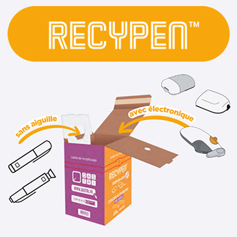 Expérimentation : le plastique de stylos injecteurs désormais recyclé dans les boı̂tes violettes RECYPEN